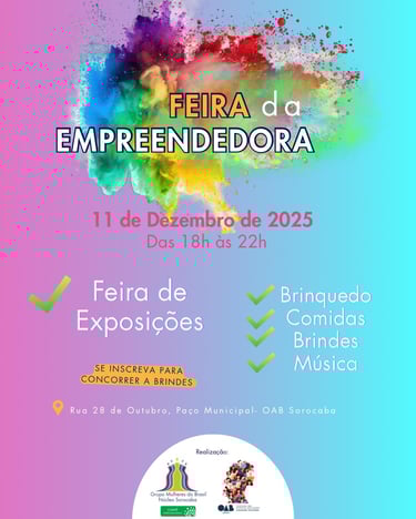 Dia 11 de Dezembro de 2025 Sorocaba foi palco de um evento inspirador e de grande impacto - A Feira da Empreendedora, realizada pelo Grupo Mulheres do Brasil através de seu Comitê de Empreendedorismo e a Comissão das Mulheres Advogadas da OAB de Sorocaba e apoio do Semear XYZ.